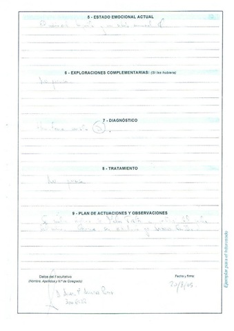 Hoja 2ª del certificado médico que dice que mi hijo Alejandro esta siendo maltratado