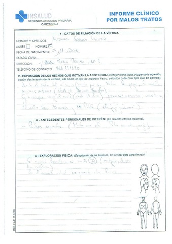 Hoja 1ª del certificado médico que dice que mi hijo Alejandro esta siendo maltratado
